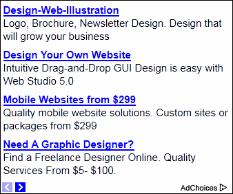 This is a typical AdSense block of ads that might appear on your site. This is one of the largest ad sizes. It contains four ads. Ads can also be pictures.