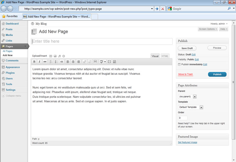 In WordPress, all you need to do is type in the text of your pages, and (if you like) add some pictures. WordPress will create the pages, apply your site's layout to them, and add a link to each one from the menu bar. If your site is a blog, you can easily make new posts. WordPress will add them to the top of the blog page for you, and manage visitor comments (if you allow comments.)