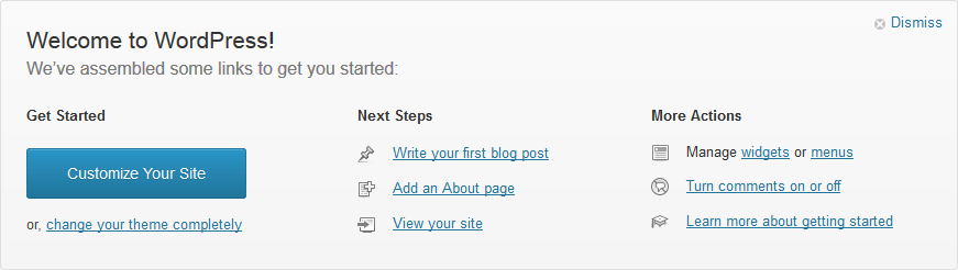 The Welcome to WordPress panel on your Dashboard should cover everything you need to know, but I've written this handy reference, in case you need more detailed instructions.